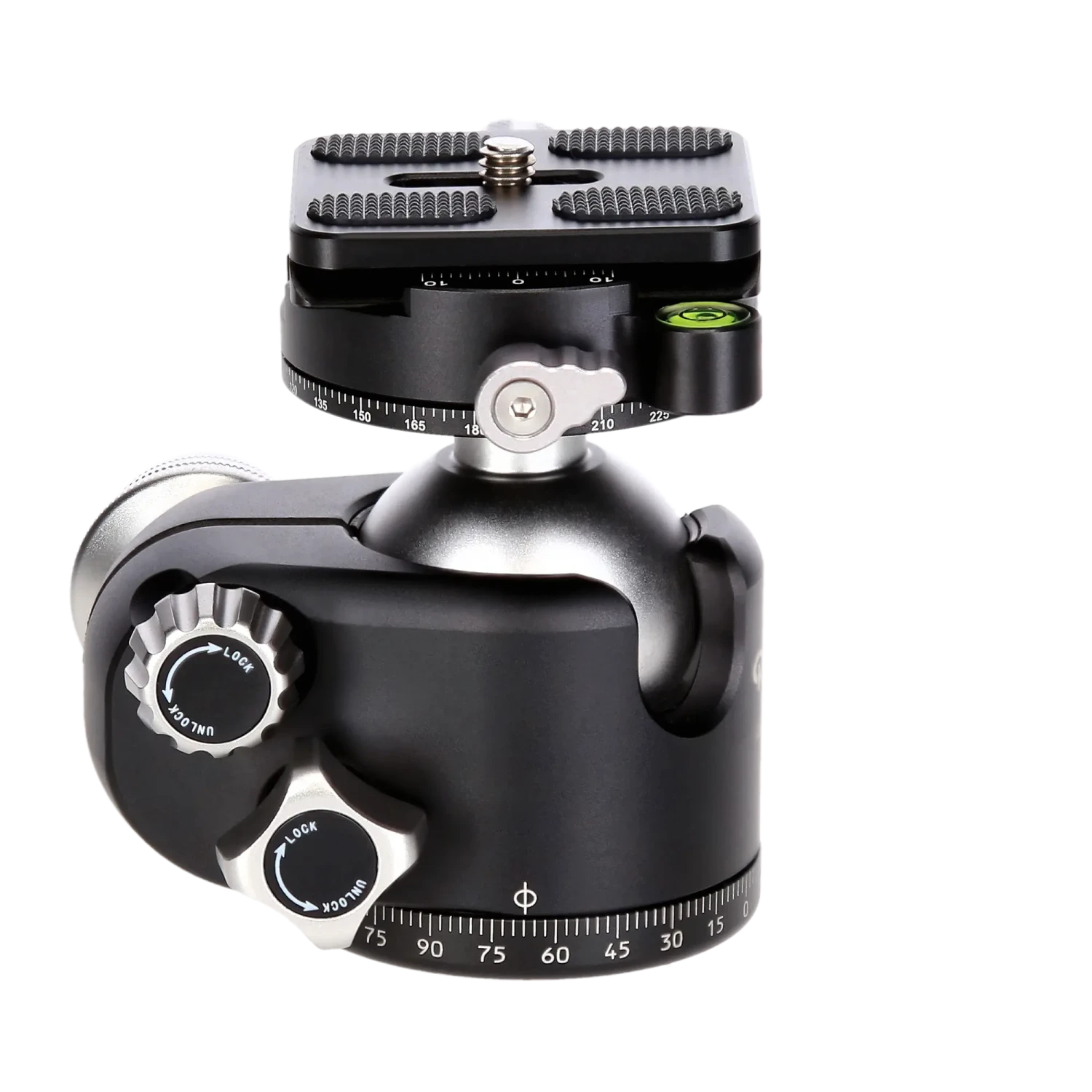 Für perfekte Panorama-Aufnahmen vom Stativ muss der Kugelkopf mit den Wasserwaagen haargenau auf den Horizont ausgerichtet werden. Über die zwei Wasserwaagen (Libelle) richten Sie Ihre Kamera exakt aus und können umgehend mit der Panorama-Aufnahme beginnen. Stellen Sie die Dämpfung über den separaten und auch mit Handschuhen problemlos bedienbaren Drehknopf vor und fixieren schließlich die Kugel. Direkt unter der Arca-Swiss-Fixierung befindet sich eine weitere Skala und eine Feststellschraube. Die zweite 360° Panoramaachse hilft Ihnen bei der einfachen Drehung ihres Equipments für Panorama-Aufnahmen.
